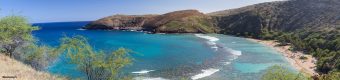 Da uns noch Zeit bleibt beschließen wir auch noch zur Hanauma Bay zu fahren, einem ehemaligen Vulkan Krater der sich im Laufe der Zeit zu einer Badebucht und beliebten Schnorchel Revier mit Korallen in “greifbarer Nähe” entwickelt hat. Vor dem Zugang zum Strand muß jeder ein Informations Video über das richtige Verhalten beim Schnorcheln ansehen und sich namentlich in eine Liste eintragen – amerikanisch halt. Aber es zahlt sich aus: Ein traumhaftes Panorama.mm