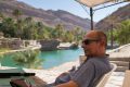 Ingrid machte sich mit der Kamera auf Fotopirsch und wir nahmen im Restaurant einen kühlen Drink. Oliver und ich nutzen die Gelegenheit für ein kühles Bad bei der man in die enge Schlucht reinschwimmen kann. Ein traumhaftes Ambiente! Unser zweites Tagesziel ist das Arabian Oryx Camp in der Wahiba Sands Wüste wo wir die nächste Nacht verbringen. Schon bei der Hinfahrt beginnt unser nächstes Allrad Erlebnis: Die letzen 11km sind Sandpisten. Juhu: Das Sliden kann beginnen!