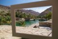 Al Wasil, Oman Das Hotel in Sur liegt zwar direkt am Strand, ist aber nicht zum Baden geeignet. Nach dem Frühstück geht die Fahrt ins Landesinnere. Nach ca. 2,5 Stunden Fahrt erreichen wir unser erstes Tagesziel, das Wadi Bani Khalid. Wir fahren das Tal bis zum Parkplatz am Ende der Straße und nach einem kurzen Fußmarsch eröffnet sich uns ein fantastischer Blick auf das Bade-Pool mit Restaurant. Es ist unglaublich – für weite Strecken sieht man nur karges Gestein und plötzlich taucht eine grüne Wasseroase mit Plamen auf.