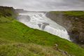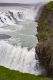 Gullfoss (der goldene Wasserfall) den hören wir schon ohne ihn zu sehen. Er fällt nur 32 m hinunter hat aber mit 150 bis 2000 Kubikmeter pro Sec. doch ansehnlich Ausmaße.