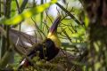 Was ist das für ein Urlaub? Heute müssen wir schon wieder zeitig aufstehen, denn noch vor dem Frühstück haben wir die erste Ausfahrt mit dem Boot auf dem Rio Tortuguero. Nach einem nächtlichen Gewitter schaut das Wetter eigentlich optimal aus aber kaum sind wir ein mal abgebogen beginnt es zu Regnen und es wird ein richtig starker Schauer. Vorteile: Der Regen ist warm und nach 10 min wieder vorbei. Trotzdem war es gut, dass wir unsere Ponchos mitgenommen hatten. Danach gabs zur Belohnung eine einhalb Stunden dauernde Tierschau. Es ist unglaublich welch gute Augen unser Bootsführer Henry hat bzw. wie blind wir Touristen im Regenwald sind. Nach dem ausgiebigen Frühstück hatten wir gleich die nächste Tour, die uns zu Fuß durch den Garten unserer Lodge führte. Es ist wieder unglaublich, wie viele Tiere hier leben und wir sie bisher nicht gesehen hatten. Die beeindruckensten dabei waren die roten Ara’s, die Rotaugen Frösche, große blau Schmetterlinge, Iguanas (Leguane), Tucan und viele Andere. Unsere Kameras laufen bereits heiß…. Gleich nach dem Mittagessen gehts wieder auf eine Bootstour, diesmal in kleinere Kanäle und Seitenarme des Rio Tortuguero. Wieder viele, viele Tiere und eine beeindruckende Scenerie in grün, die wir genießen können als Henry unser Boot ganz langsam durch diese Kanäle treiben lässt. Die Urwald Riesen und Schmarotzerpflanzen säumten unseren Weg – ein Bild zum genießen. Henry – wir nannten ihn auch Hamilton – konnte unser Boot aber auch ganz schnell steuern was auch ziemlich cool war. Die Nachttour ist leider wegen mangelnder Nachfrage entfallen – wäre sicher auch sehr interessant gewesen.