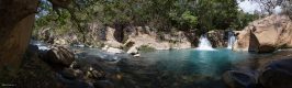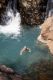 Der Wasserfall hat sowohl am Zufluss als auch unterhalb des Falls kleine Becken, in die Oliver und ich baden gehen. Eine angenehme Abkühlung, den mittlerer Weile haben wir um die 32 Grad. Leider wird es für mich zu einem teuren Unternehmen, denn als ich kurz untertauche wird mir von der sehr starken Strömung die optische Sonnenbrille heruntergerissen und weg ist sie.
