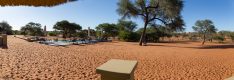 Dann ging es auf der B1 nach Süden wo wir nach 60 km am Stausee Oanob nähe Rehoboth einen Fotostopp einlegten (Strauße & Zebras gesichtet). Nach weiteren 100 km biegen wir in Kalkrand nach Osten in die C21 ab und ab jetzt ist Staubstraße die phasenweise wie Hochschaubahn-fahren ist, da immer wieder Dünen quer zur Straße sind. Nach 45 km biegen wir in eine noch kleinere Staubstraße nach Süden und erreichen nach 20 km die Einfahrt ins private Gelände der Zebra Kalahari Lodge die wir nach 7 km über Sandstraße erreichen.