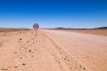 Heute geht’s nach Nordwesten, so ungefähr 310 km, natürlich auf Schotterpiste. In Solitär, eine Tankstelle mit Restaurant, bewundern wir die ‘Gartenzwerge’ im Vorgarten.