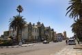 Heute ist Frühnebel bei 18 Grad in Swakopmund doch nach dem Frühstück beginnt sich die Sonne durchzukämpfen. Wir wohnen im Zentrum und gehen daher zu Fuß durch die Stadt und klappern die 4 Schuhgeschäfte nach Wanderschuhen für mich ab. Erfolglos rasten wir uns im Café Anton bei Fruchteisbecher & Beerentorte aus. Lustigerweise kommen da auch 2 Paare aus DE vorbei die wir in den beiden letzen Hotel kennenlernten! Auch am Stadtrand im Shoppingcenter hab’s keine passenden Wanderschuhe, na muß ich halt mit den Sandalen die Tage bis zum 17. Nov. durchhalten. Statt Schuhen gab’s dann halt ein Kettchen mit Zebraanhänger in Gold – ist auch nicht schlecht oder? War hat a bißchen teurer …