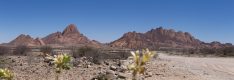 Wir kommen an der Spitzkoppe das ‘Matterhorn‘ von Namibia vorbei da hat es bereit 38 Grad. Als wir nach 14:00 im Tented Camp Malansrus ankommen hat es 40 Grad – na servus da werden wir die nächsten 2 Tage schwitzen! Heute sind wir die einzigen Gäste & fühlen uns wie die Kaiser. Nach ausgedehntem Nachmittagsruhen bekommen wir ein exzellentes Abendessen (gebackener Schafkäse mit Avocado/Paprika/Paradeis Salat, butterweiches Oryxsteak mit Gemüse & Kräutererdäpfel & Schokodessert)
