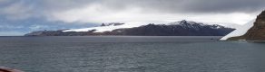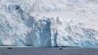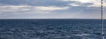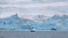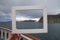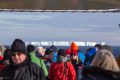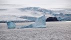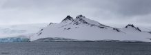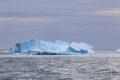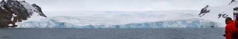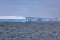 Unser Tageshöhepunkt war dann um 19:00 mitten in der Bransfield Strait erreicht als wir 2 Tafeleisberge passierten. Es gab daher Sekt am Pooldeck. Der erste Eisberg war super schön in der Sonne & ca. 1,2 km lang, aber der nächste war ein Superding. Wir fuhren frontal auf seine Breitseite (11 km breit & 70 m hoch) zu und passierten ihn dann auf der südlichen Längsseite für mehr als eine Stunde lang, denn er hatte 22 km Länge – beeindruckend! Das Wetter änderte sich auf bewölkt, was nichts Gutes für den nächsten Tag vermuten lies.