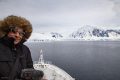 Hier hatten die Pinguine (weil weiter südlich und damit kälter) noch keine Jungen, sondern brüteten noch auf den Eiern. Das tägliche Treiben der Eselpinguine konnten wir eine Stunde bewundern, wobei es schon ersichtlich war das einige Tiere irritiert waren von den Besuchern auf Ihrer Insel! Um 9:45 hatten wir bei ausgiebigem Frühstück unsere Eindrücke besprochen und ein Buckelwal hatte sich auch beim Schiff gezeigt! Ab 11:00 hatten wir die schmale Einfahrt bzw. Durchfahrt des Neumayer-Sunt von Deck aus miterlebt.