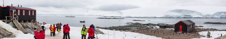 Das Wetter hatte sich wieder auf bewölkt eingestellt als wir im Naturhafen vor Port Lockroy ankerten. Diesmal war unsere Gruppe zuerst zum Anlanden eingeteilt, wir starteten um 13:30. Bei der Zodiacfahrt fanden wir auf einer kleinen Nachbarinsel eine Krabbenfresser-Robbenfamilie die sich anscheinend dem Verdauungsschlaf hingab. Die ehemalige brit. Forschungsstation (bis 1962) wird seit 1996 als Museum mit Shop und Poststation betrieben und wird von einer Eselspinguin Kolonie umlagert. Wir genossen das Pinguinleben hier viel näher, da diese Tiere die Menschen schon sehr gewöhnt waren. Außerdem waren diese Eselpinuguine ca. 5 cm größer und kräftiger als die die wir bisher gesehen hatten. Nach ausreichender Besichtigung ging es die Granitfelsen wieder hinunter zum Zodiac und ab 15:00 gaben wir uns sehr zufrieden mit dem an diesem Tag erlebten dem Bordleben hin…ich hatte das Sichten der Fotos mit einem Nachmittagsschlaf unterbrochen, die anderen hatten gelesen oder/und beim Ratschen die Nachmittags Jause genossen.