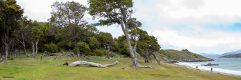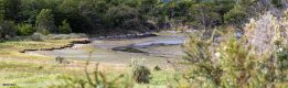 13:00 Mittagessen und um 14:30 ging’s bei Bewölkung mit dem Bus ab in den N.P. Tierra del Fuego wo wir an 4 verschieden Stellen hielten um 30-50 Minuten herumspazieren zu können. Im Park gibt es kein Hotel nur 3 spartanische Campingplätze und tagsüber ein Café mit kleinem Imbiss und viele Wanderwege in den Wäldern, entlang des Meeres bzw. am See Lago Roca der bis nach Chile ‘rüber geht.