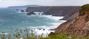 Eigentlich dachten wir das schlechte Wetter bereits erlebt zu haben, doch heute wurden wir Besserem belehrt! Keine Sonne, dafür Regen und Wind bis Sturmstärke und das den ganzen Tag. Daher haben wir die Tour umgeplant, weil Gartenbesichtigung wäre für uns wirklich nicht gegangen. Also von der Ärmelkanalküste ‘rüber zur Atlanikküste und von Portreath ging’s der Küstenstraße entlang Richtung Südwesten.