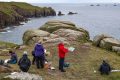 Der Wind und Regen der uns seit den frühen Morgenstunden beim Schlafen belästigt hat begleitete uns heute bis auf ein 5 Minuten Pause den ganzen Tag bei max. Höchstemperatur von 13 Grad 😏 ! Und ich bekämpfe meine ‘Fieberzustände’ nun schon den 2. Tag mit Paracetamol ohne Besserung. Daher gibst Kurzprogramm für heute uns wir beginnen mit einem Coast-Path-Spaziergang von Sennen Cove bis kurz vor Land’s End um den Zipfel von England einzufangen und das 2003 gestrandeteDeutsche Frachtschiff das inzwischen schon in 2 Teile zerbrochen ist. Trotz des wenig einladenden Wetters waren genug Wanderer unterwegs. Die Klippen und Moorwiesen samt Weiden sind ein schönes Naturerlebnis – können wir nur empfehlen! Das Meer war heute ruhiger als gestern. In Sennen Cove waren trotzdem Surfer im Ganzkörper-Neoprenanzug aber ohne Schuhe am Brett unterwegs.