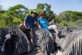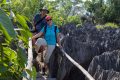 Tonga, er ist hier aus dem Ort, erwartet uns schon am Eingang des NP & auch ein Chamäleon 😃. Eigentlich hatten wir nur eine Wanderung erwartet, aber wir klettern wieder durch & über die spitzen Felsen. Aber ohne Kletterzeug, denn die Felsen sind nur bis zu 15 m hoch & mit Bäumen durchsetzt deren Kronen z.T. über die Felsen ragen.