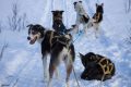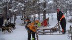 Jedes Touristen Pärchen suchte sich ein Gespann aus Schlitten und 5 Hunden aus und schon ging es in 2 Gruppen los. Voran das Gespann mit dem Guide und dann 3 Touristen Gespanne.