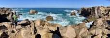 Direkt am Atlantik Strand war unser nächstes Ziel Sines. Kurz vor der Stadt haben wir am Strand den tosenden Atlantik mehr als eine halbe Stunde beobachtet . Die Wellen haben sich an den schroffen Felsen der Steilküste gebrochen und bis zu 10 m auf gespritzt ein beeindruckendes Schauspiel ! Kurt hat dann natürlich auch einen Drohnenflug gemacht. Anschließend haben wir uns die Burgfestung von Sinnes angesehen die direkt über dem Sandstrand Mitten im Ort liegt . Sie besteht aber nur mehr aus der Außenmauer auf der man herum spazieren kann. Was uns bei 28 Grad ganz schön ins Schwitzen brachte!
