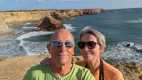 Da es gerade erst 13:00 war wollten wir noch 2 Stopps bis Sagres ( unser heutiges Ziel) einlegen. In Vila Nova de Milfontes wollten wir das Fort besichtigen, doch es hatte nicht geöffnet. Daher nur Fotos von außen & ein Spaziergang durch den Ort und wir legten trotz der vielen Mehlspeisen nur einen Drinkstop im netten Cafe Lareu ein. Milfontes liegt direkt an der breiten Flußmündung des Rio Mira & hat tolle Sandstrände . Wind ist hier ein stetiger Begleiter, daher sind viele Wellensurfer hier die mittels Fähre den Südlichen Strand bevorzugen. Der Atlantik produziert hier viel Gischt = Salz in der Luft😀. Ingrid hat noch ein Schiffswrak nördlich des Ortes entdeckt, dort mussten wir natürlich auch hin….😁!