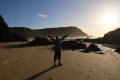 Nach einer kurzen Pause auf unser Zimmerterrasse hat Kurt die geniale Idee einen Fotopoint bei Sonnenuntergang zu besuchen. Genannt wird er das “Herz von Atlantis” und ist kaum 20 Minuten von Sagres entfernt. Dieses Mal war ich nicht so richtig überzeugt von diesem Vorschlag, aber ich bin mitgefahren und habe die 250 m Fußweg über den Sandstrand bis zu der Felsformation mitgemacht. Dort angekommen konnten wir uns nicht satt sehen an dieser schönen Naturkulisse. Schwarze schroffe Felsformationen im wilden Meer, ein Sandstrand zum Träumen und steile Berge mit eigenartiger Plattentektonik. Der Wind bläst uns um die Ohren, die Meeresgischt trübt unsere Brillen, aber trotzdem harren wir zwei Stunden bis zum Sonnenuntergang hier aus. Einfach wunderschön, es hat sich ausgezahlt hierher zu kommen🤩! Die Fotos sprechen für sich….