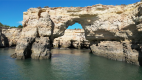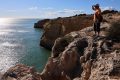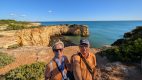 Bei Praia de Albandeira soll es tolle Sandbuchten und einen spektakulären Felsbogen und auch Grotten geben. Und wahrlich, der Felsbogen ist beeindruckend & Kurt packt natürlich die Drohne aus. Ich entdecke in Google Maps in ca. 200m Entfernung zwei Grotten deren Decke eingestürzt ist und auch dort müssen wir hin .
