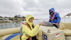 Wir waren uns nicht sicher ob wir fahren wollten aber der Veranstalter meinte um 12.00 Uhr soll es noch schlimmer werden mit Regen also entschlossen wir uns um 10.00 Uhr loszufahren. Der uns zugewiesene Kapitän war überhaupt nicht begeistert weil er nach seinen Aussagen nicht geschaffen ist für so ein Wetter. Schließlich waren wir beide die einzigen Gäste am Boot.