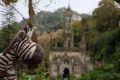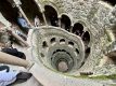 Ups, vor dem Eingang zum Palast ist die Warteschlange aber sehr lang – mehr als 200m ! Pro 30 Min. werden 300 Karten im Onlineverkauf freigegeben – eine Geldmaschine! Nach 45 Min. sind wir endlich im 4 ha großer Park. Dieser wurde nach den Plänen des Unternehmers & Exzentrikers António Augusto Carvalho Monteiro 1910 fertiggestellt! Der Garten hat sehr schönen Baumbestand & die vielen Türme & Grotten haben ihren Reitz. Aber ganz besonders ist der begehbare Brunnen Poço Iniciático, eigentlich ein Turm in den Felsen nach unten gebaut mit Wendeltreppe und Zugang zu einem Tunnelsystem und Grotten. Und auch hier müssen wir wieder anstehen! Aber schön beeindruckend ist er!
