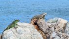 In Marigot der Hauptstadt des franz. Inselteiles, kommt endlich die Sonne raus und es wird ganz schön heiß als wir Leguane an der Küste beobachten. Daher beschließen wir uns einen Drink zu gönnen, doch das dauert denn auf der Suche nach einem Lokal stecken wir wieder im Stau. Außerdem sind Parkplätze auf der ganzen Insel kaum zu finden. Mit Geduld finden Parkplatz und eine nicht überlaufene Bar in Strandnähe. Wir wollen trotz nachmittäglicher Hitze (29 Grad) doch zur verfallenen Festung “Luis” fahren die sich nur 65 m über Meeresspiegel befindet. Einige Stufen müssen wir vom Parkplatz hinauf um den tollen Rundumblick auf die Nordküste zu genießen. Wegen dem kräftigen Wind fliegt Kurt die Drohne hier leider nicht.