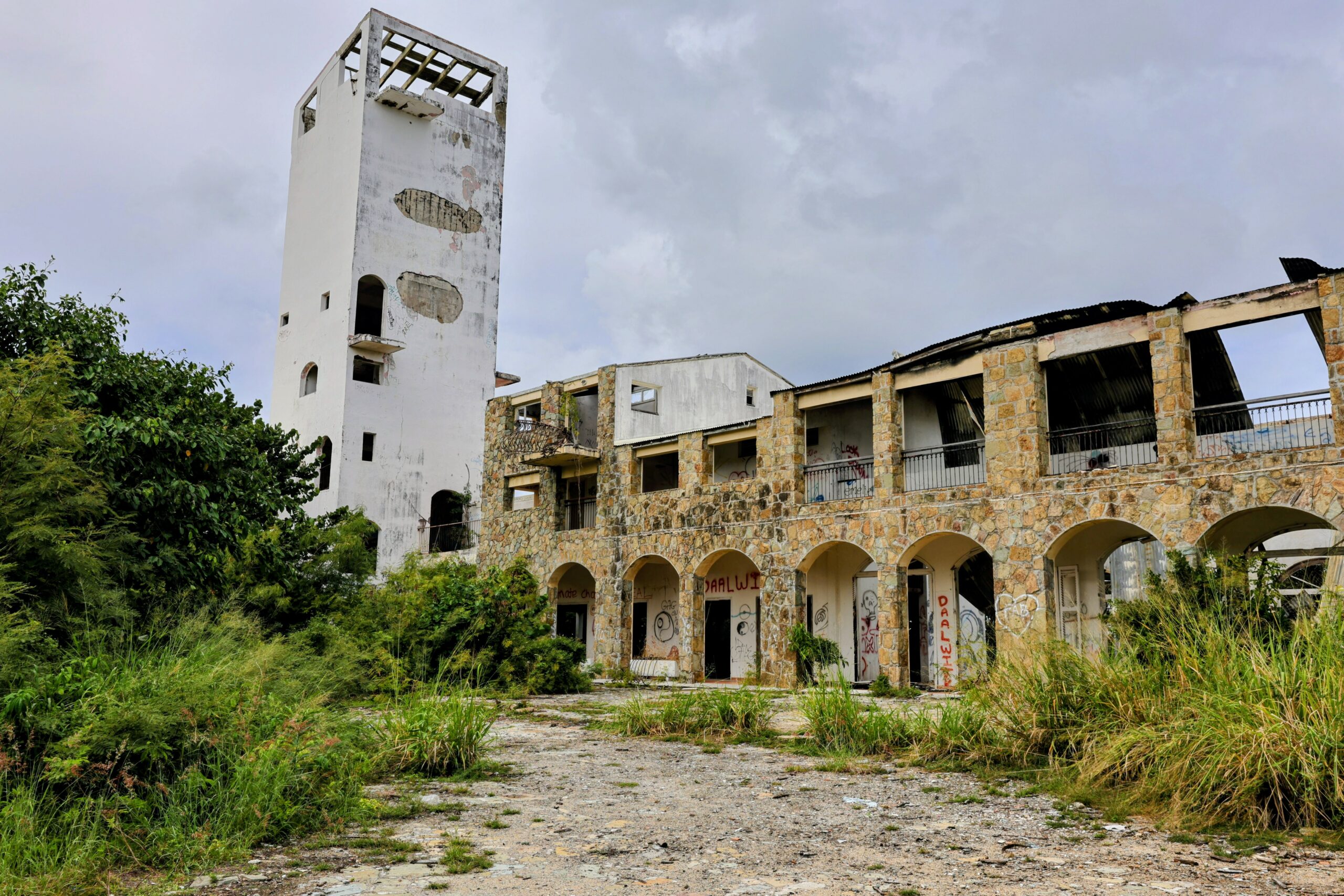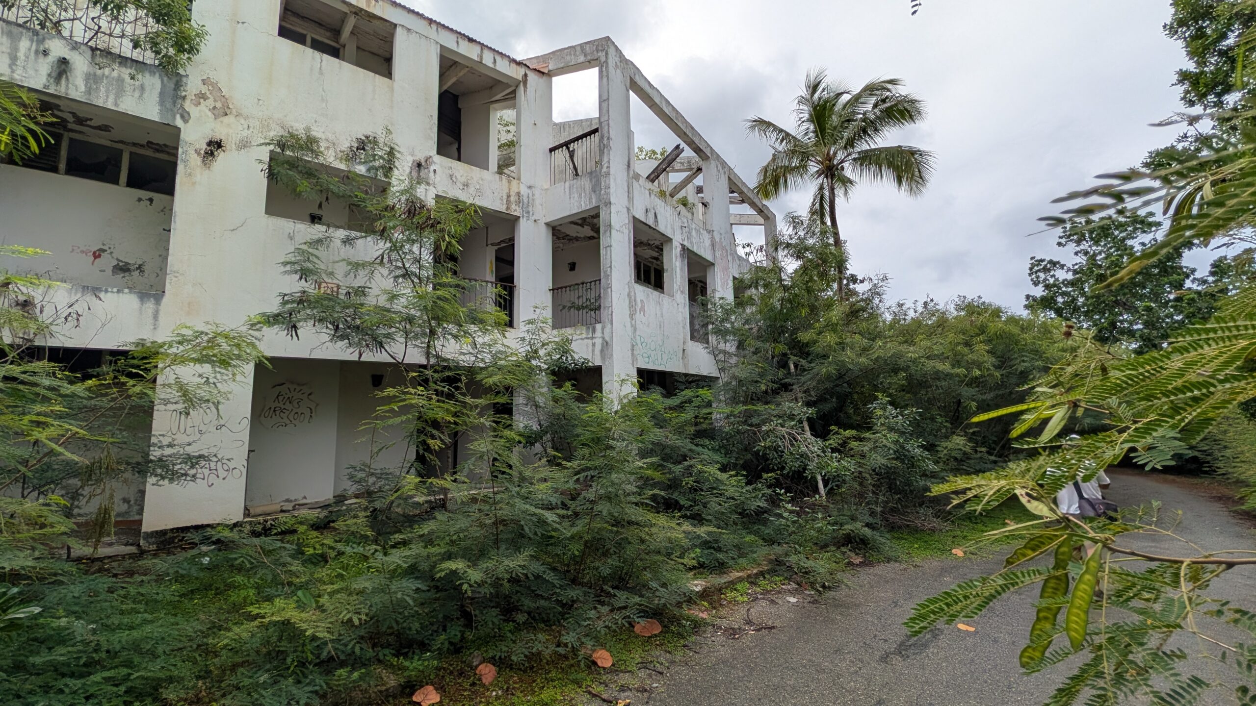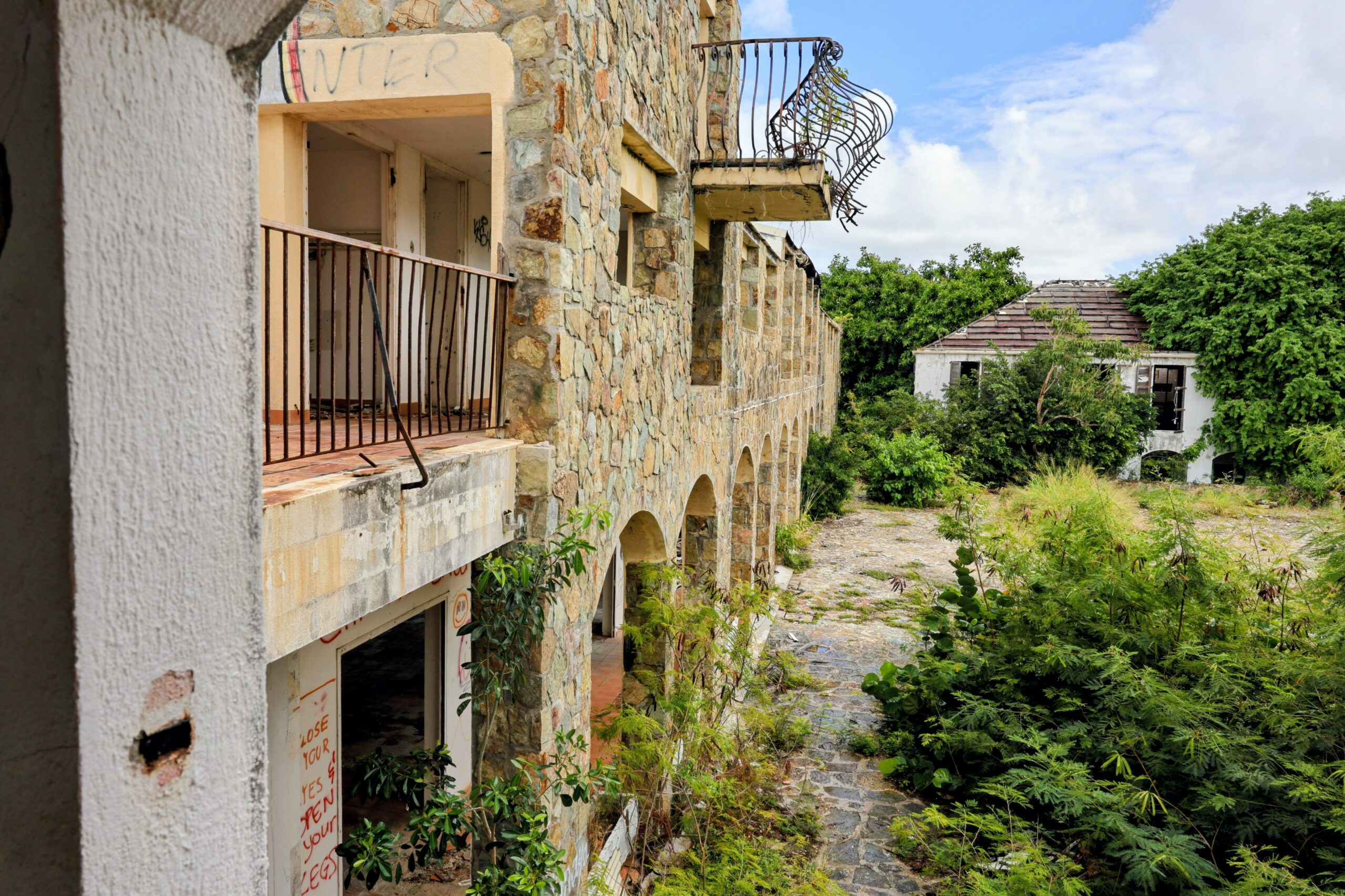 die Flugzeuge ganz tief über den Badegästen fliegen. Der Regen hat aufgehört und schon kommt ein Flugzeug, aber leider nur ein kleines daher nicht so beeindruckend für uns. Ingrid hat einen Lostplace im französischen Nordteil ausfindig gemacht. Eine Hotelsiedlung die vor Jahren von einem Hurrikan zerstört und nicht wieder instandgesetzt wurde und da fahren wir hin. Da die Zufahrtsstraße gesperrt ist laufen wir ca. 800 m durch die ungepflegte Landschaft und staunen als wir zu den verfallenen Häusern kommen den es sind auch andere Neugierige Leute da. Wir verlieren uns beim Rundgang durch die verfallenen Räume! Und natürlich ist hier ein Drohnenflug pflicht. Erst nach ca. 2 Std. kehren wir zum Auto zurück.