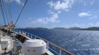 Die ganze Nacht wurden wir heute verschaukelt, denn unsere sea Cloud Spirit ist auf unserem ersten Törn von Philipsburg nach Virgin Gorda. Da der Wind mit ca. 25 Knoten bläst sind auch die Wellen ca. 1 bis 2 m hoch. Da müssen wir uns im Bett schon einigermaßen anhalten.