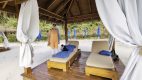 Ingrid und ich finden gleich eine sehr kitschige Strandliege zwischen Palmen, die wir in Beschlag nehmen.