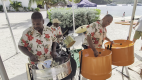 Unsere Crew hat gar keine Kosten und Mühen gescheut und wir dinnieren bei fein gedeckten Tischen. Eine kleine Steelpan Band sorgt mit Livemusik für karibisches Flair. Es gibt als Aperitif, Sekt und diverse Rumgetränke, die sehr gut angenommen werden. Das Barbecue reicht von Salat Buffet, Big Browns über Rinderfilet und Fisch bis zu Gemüsespießen, Torten & Obstplatten. Ingrid nimmt zweimal Mangoeis !!