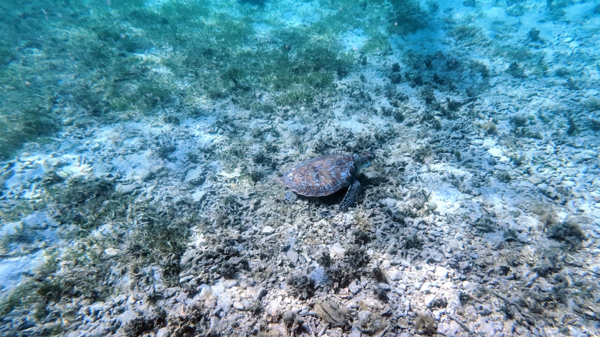 Steven, der Lektor, den wir schon aus Costa Rica kennen, gibt hier am Strand der Bright Bay geführte Schnorchel-touren und da bin ich, Kurt, selbstverständlich gleich dabei. Ca. eine Stunde waren wir mit ihm unterwegs und er erklärt uns unzählige Fische. Korallen und sonstige Wassertiere bzw. Pflanzen, die zu sehen sind. Ich bin fasziniert von Steven wie leicht er beim schnorcheln einige Meter abtauchen kann. Zu unserer Überraschung sehen wir am Ende der Tour noch zwei Echte Karettschildkröten, die am Meeresboden in ca. 3m Tiefe Meergras fressen.