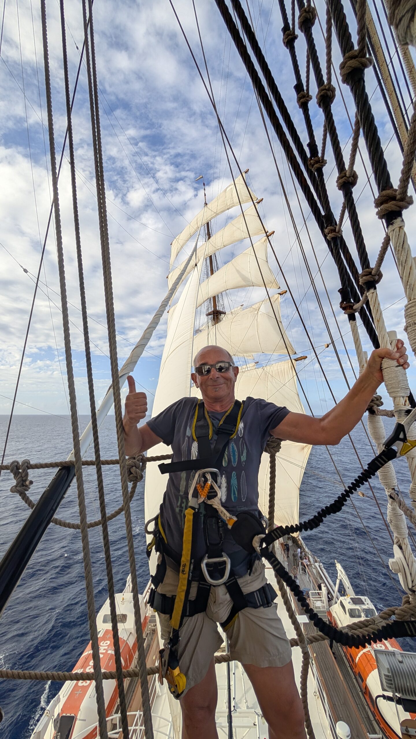 Es war ein tolles Gefühl oben angekommen zu sein und einen neuen, tollen Einblick auf unser schönes Schiff zu bekommen. Eigentlich war’s gar nicht schwer und man fühlt sich durch die Sicherheitseinrichtungen gut aufgehoben.