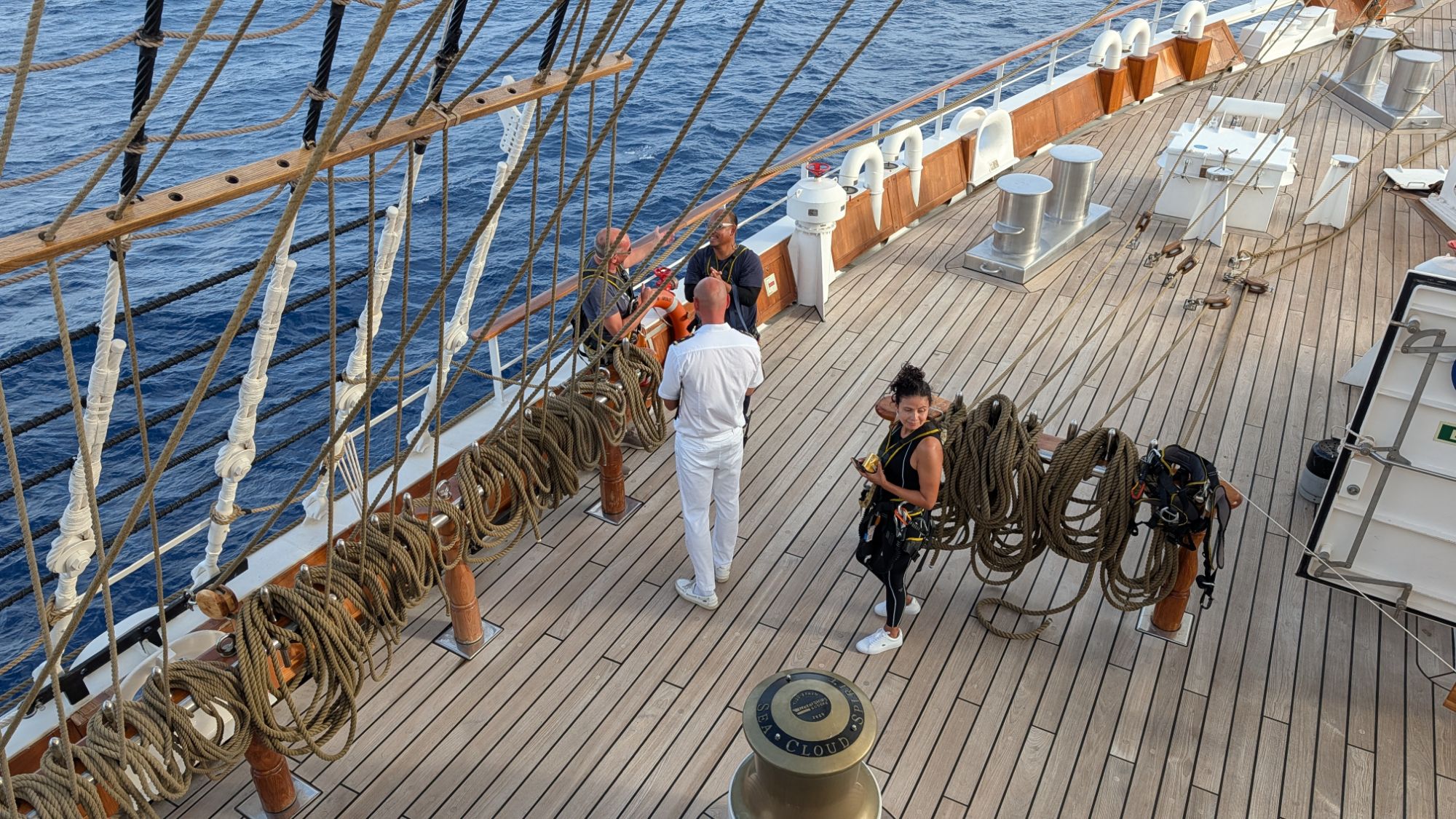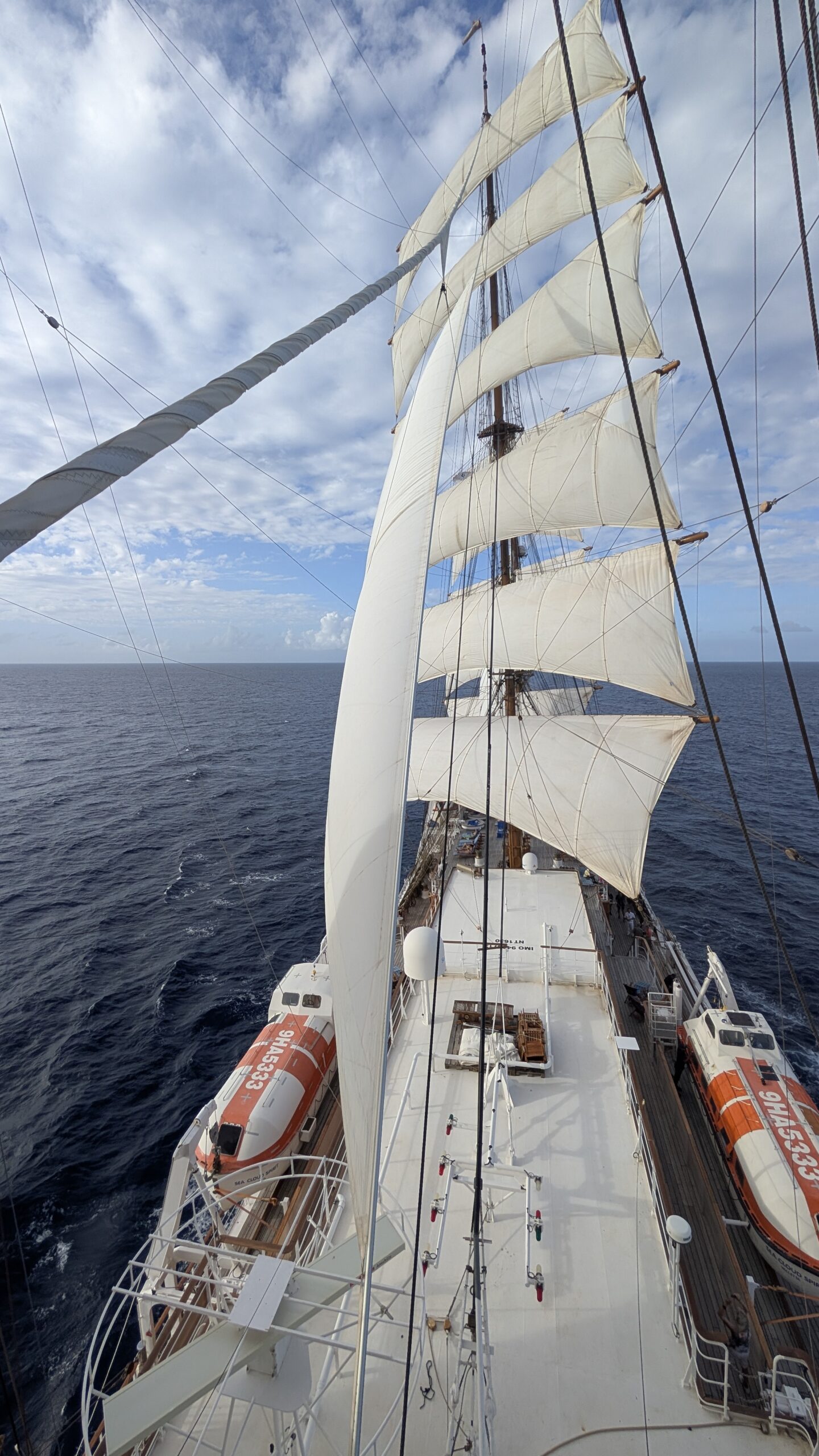 Wir hatten heute den zweiten Segeltag, wo wir parallel zur Sea Cloud II unter Segel fuhren.