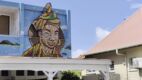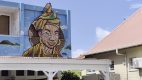 Da wir bis zur Rückfahrt noch etwas Zeit hatten machten wir einen kleinen Rundgang durch den Ort. Wir fühlten uns dort irgendwie sofort wohl. Terre de Haut hatte für uns das richtig karibische Flair: Vorwiegend kleine Häuschen in den Typisch karibischen Farben rosa, türkis, gelb, rot, nette Gärten mit vielen blühenden Pflanzen – einfach schön. Wir besuchten den Friedhof des Ortes der bekannt für seine Gräber mit Schneckenhäusern. Beim Rückweg zum Peer sahen wir noch einen interessanten Laden mit Shirts, aber leider hatten wir keine Zeit mehr einzukaufen. Um 13:15h ging’s mit dem Tenderboot zurück zu Sea Cloud Spirit.