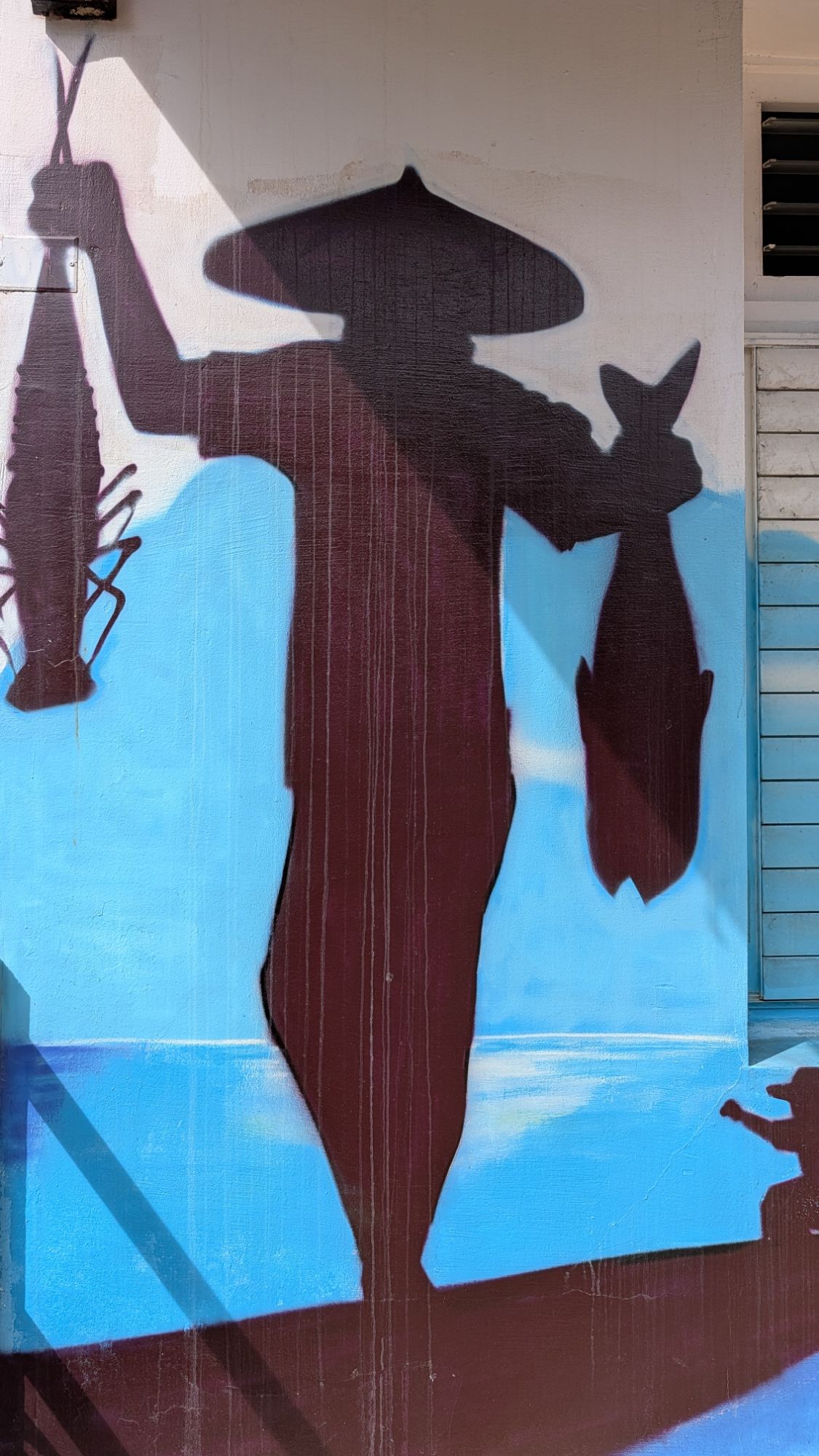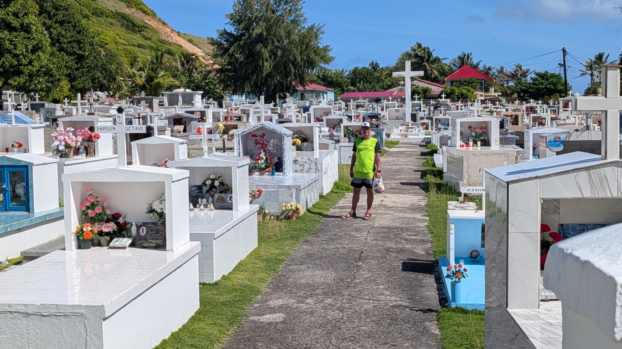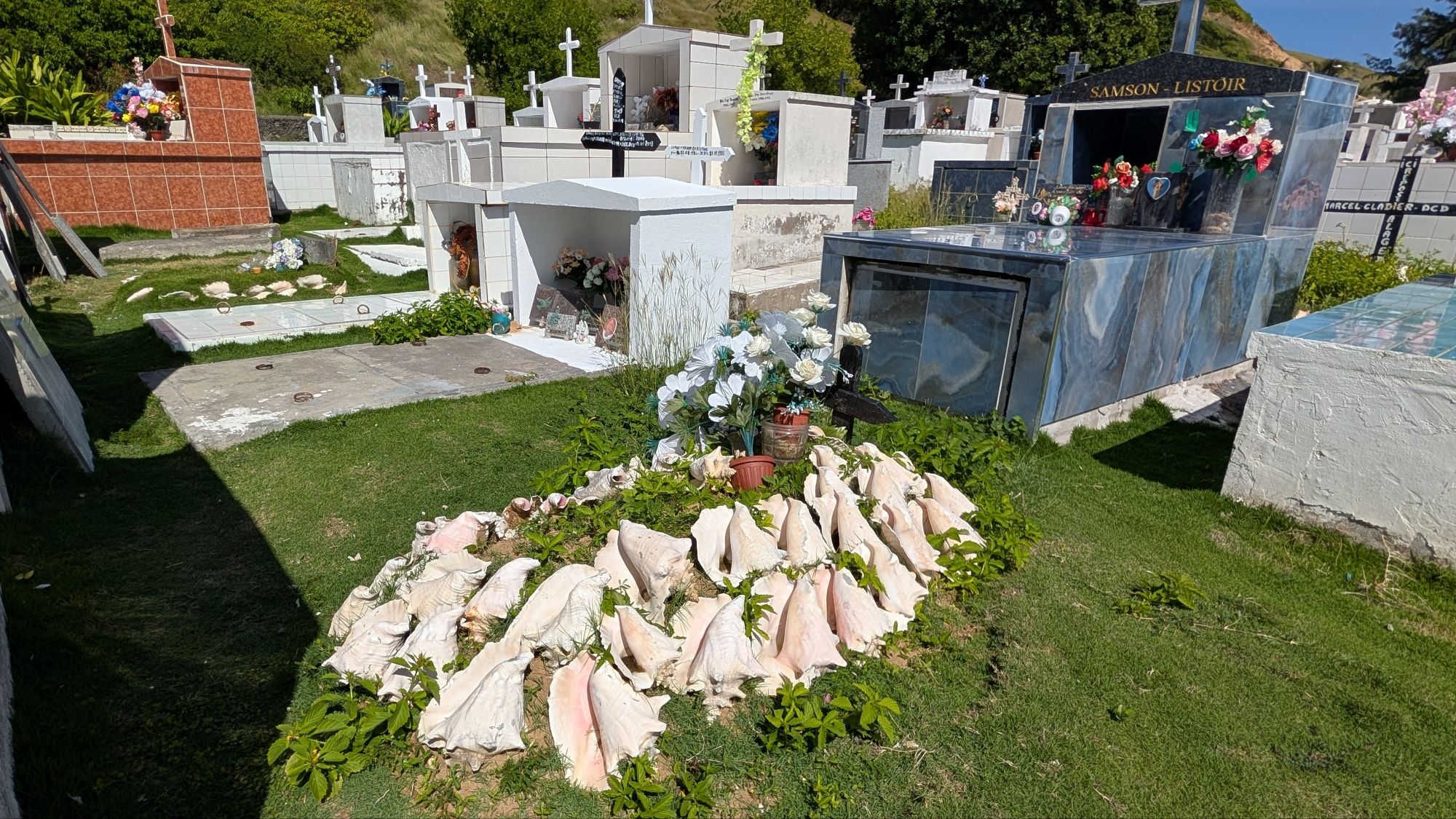 Da wir bis zur Rückfahrt noch etwas Zeit hatten machten wir einen kleinen Rundgang durch den Ort. Wir fühlten uns dort irgendwie sofort wohl. Terre de Haut hatte für uns das richtig karibische Flair: Vorwiegend kleine Häuschen in den Typisch karibischen Farben rosa, türkis, gelb, rot, nette Gärten mit vielen blühenden Pflanzen – einfach schön. Wir besuchten den Friedhof des Ortes der bekannt für seine Gräber mit Schneckenhäusern. Beim Rückweg zum Peer sahen wir noch einen interessanten Laden mit Shirts, aber leider hatten wir keine Zeit mehr einzukaufen. Um 13:15h ging’s mit dem Tenderboot zurück zu Sea Cloud Spirit.