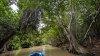 Dort warteten schon die Boote auf uns, die uns in den Regenwald brachten. Unser Guide am Boot war ein uriger Typ mit einem Jamaika Outfit – alles cool! Schon nach kurzer Zeit wurde der Benzinmotor abgestellt und ab dann fuhren wir nur mit Elektromotor weiter damit wir die Geräusche des Regenwalds aufsaugen konnten.